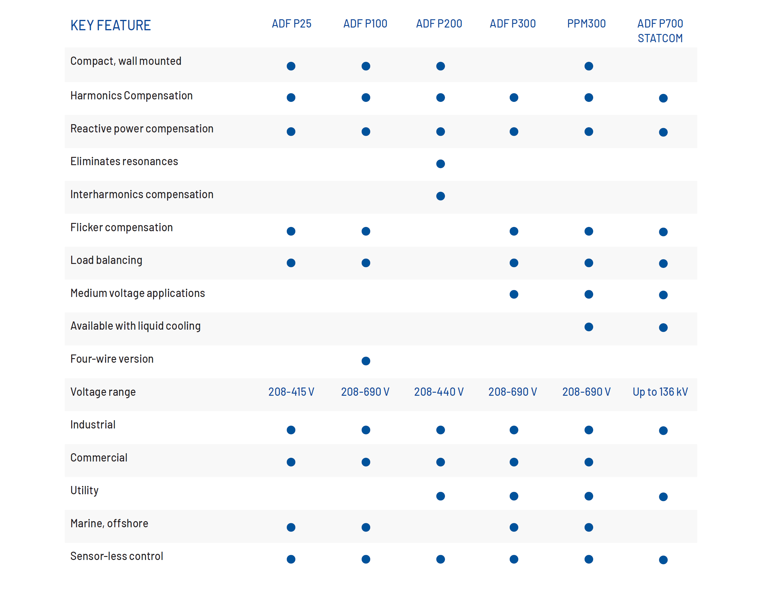 The COMSYS ADF Series sets the industry standard for active harmonic filters (AHF), providing a cost-effective solution to address your power quality challenges. Proven ADF Technology helps you achieve power quality compliance, lower your energy costs, optimize space, reduce hassle, and improve productivity by avoiding downtime. With unbeatable modular, scalable, and customizable design, the ADF range is specially designed to help you achieve all your power quality goals. It is also the only solution in the world that has sensorless control, meaning no CTs (current transformers) are required.