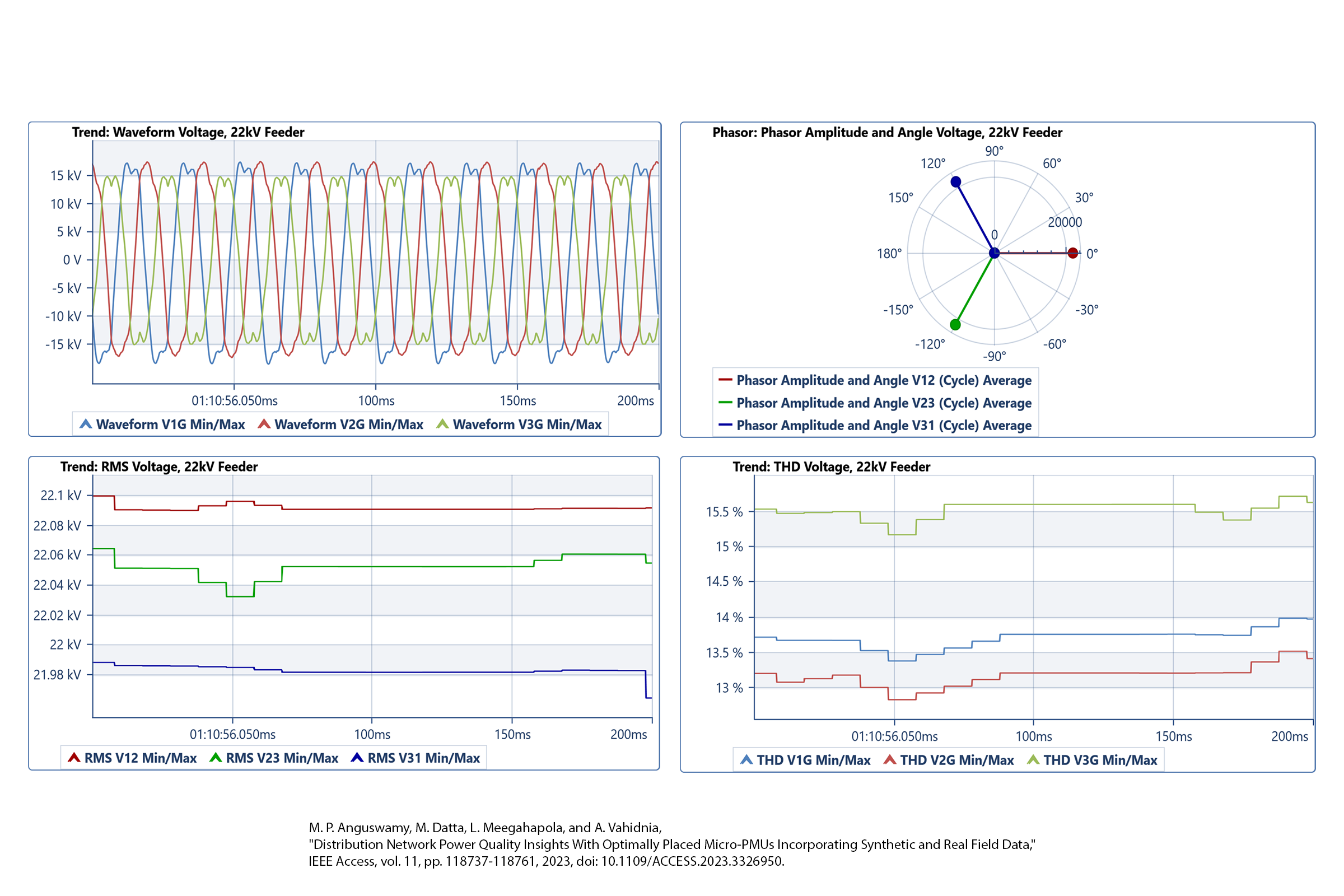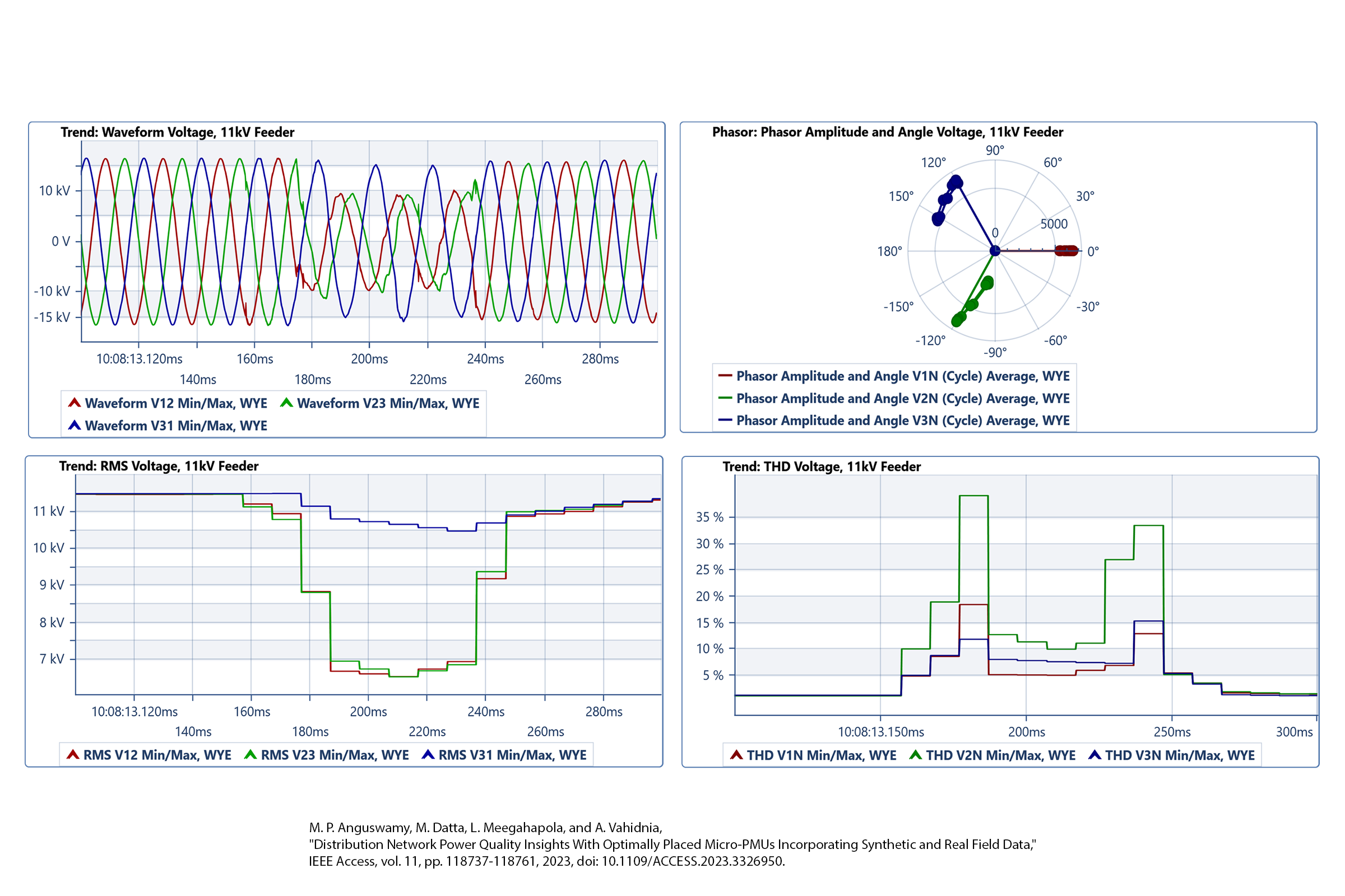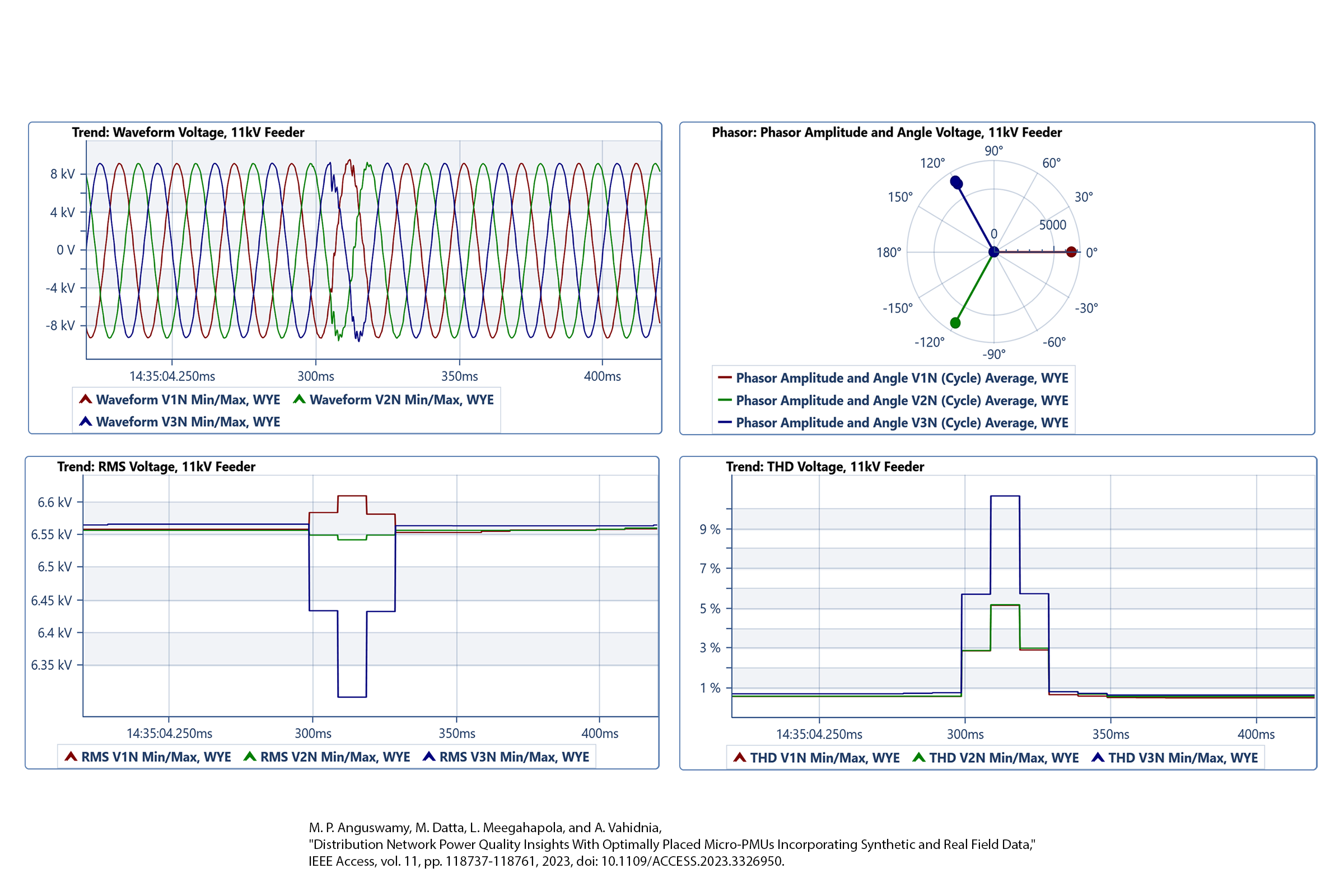 A unique time synchronization algorithm assures that logged data from multiple units is synchronized & displayed on the same time scale with typical 0.1 ms resolution. Every event on a grid is accurately analyzed for precise root cause analysis, behavior propagation, and traced to its source.